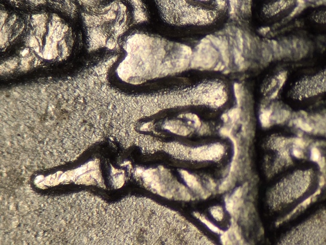 | SDDR-002 | Doubling to the southeast below the second and third branch of the right tree. Die Markers: Obverse: Die gouge on the right eye. Die gouge above the chin. Reverse: Die gouge at the rim above the M in AMERICA. Die gouges between the T and S in CENTS. | |