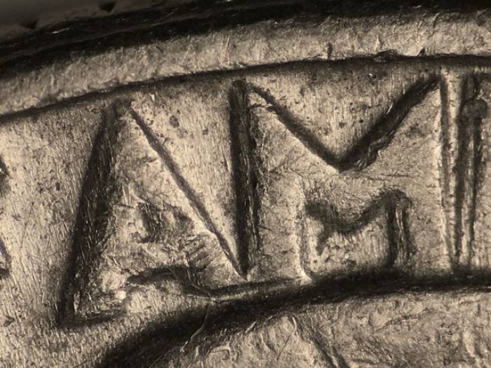Reverse: Die crack runs across the right wing then through the first A in AMERICA and the F in OF.